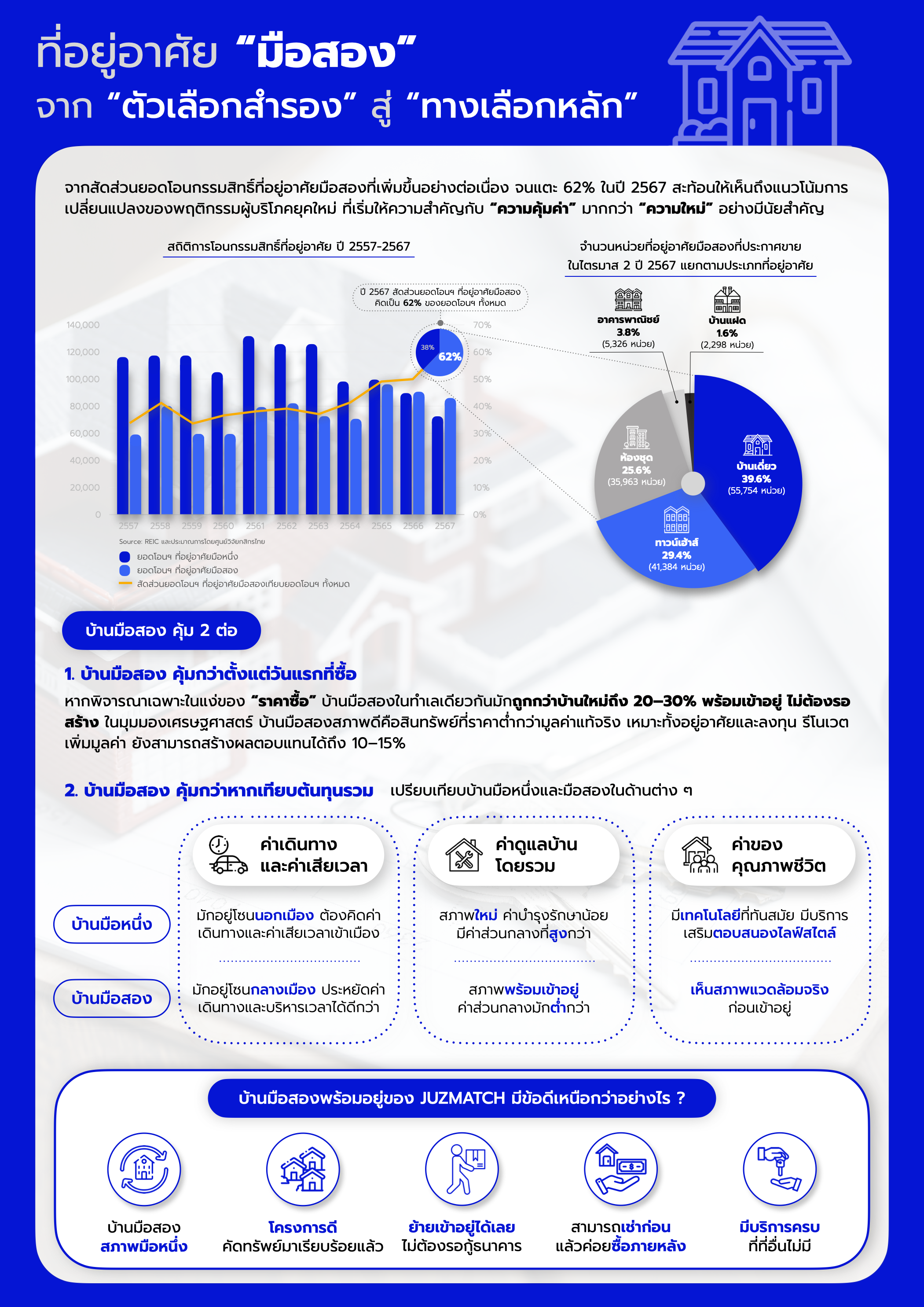 สรุปคือ บ้านมือสองหรือบ้านรีเซลส์ ฟังแค่คำอาจฟังดูไม่เร้าใจสำหรับบางคน แต่สำหรับคนหัวสมัยใหม่ที่ต้องการใช้เงินให้คุ้มค่ากับไลฟ์สไตล์ ไม่อยากเป็นหนี้เกินจำเป็น บ้านมือสองคือทางเลือกที่ฉลาดอย่างยิ่ง เพราะราคาเข้าถึงได้ง่ายกว่า และให้ความคุ้มค่าโดยรวมมากกว่า หากเลือกบ้านมือสองที่ดีเป็น