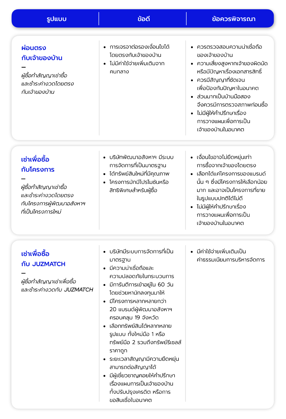 โมเดลเช่าเพื่อซื้อ JUZMATCH เหมือนหรือต่างกับโมเดลอื่น ๆ ในไทยอย่างไร